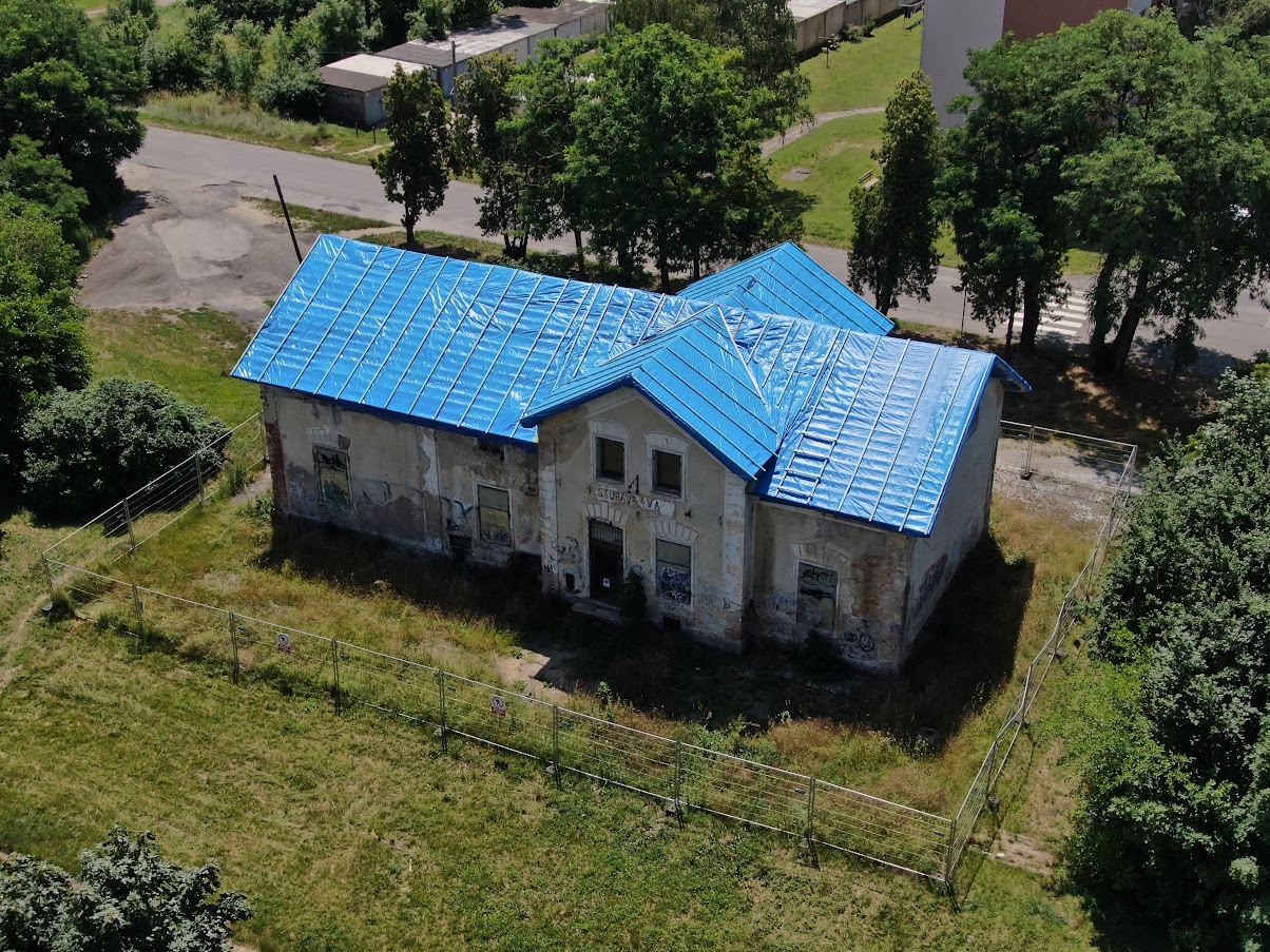 Stabilizácia budovy, jej vyčistenie odstránená stará strešná krytina a sutiny, odstránené prehnité drevené časti, nainštalované prestrešenie, ktoré zabráni vnikaniu dažďových vôd a vystužené staticky narušené časti.